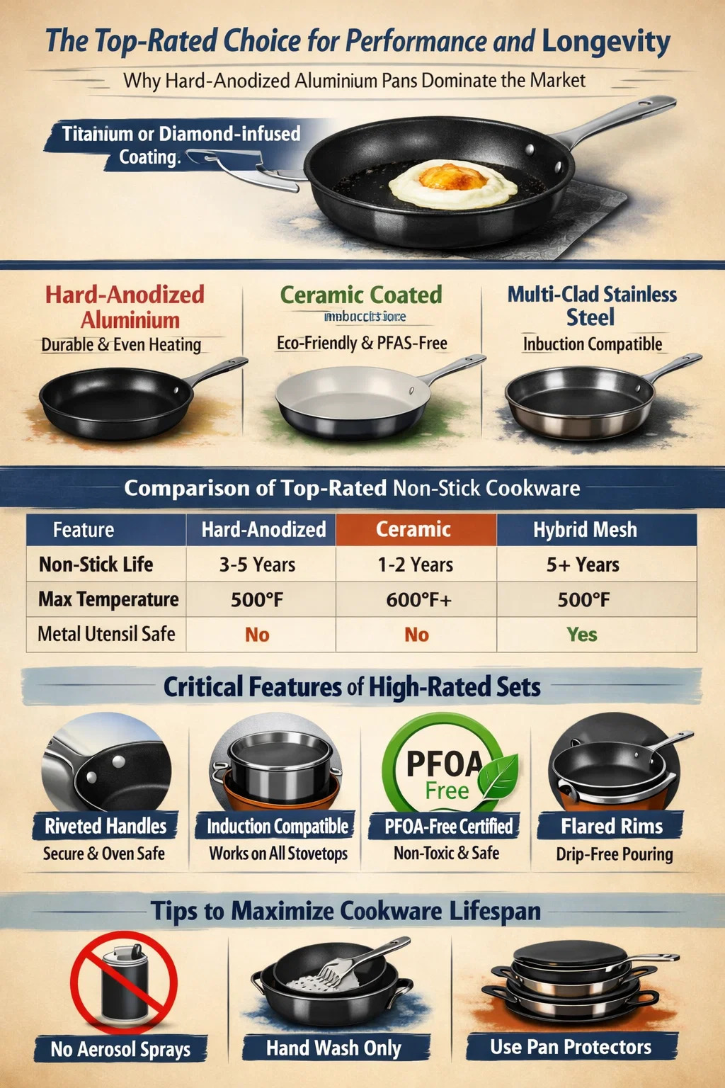 - Solo lavaggio a mano: Sebbene molti set affermino di essere lavabili in lavastoviglie, i detersivi aggressivi e il calore elevato lo faranno degradare il rivestimento fino al 50% più velocemente rispetto al lavaggio a mano con una spugna morbida.