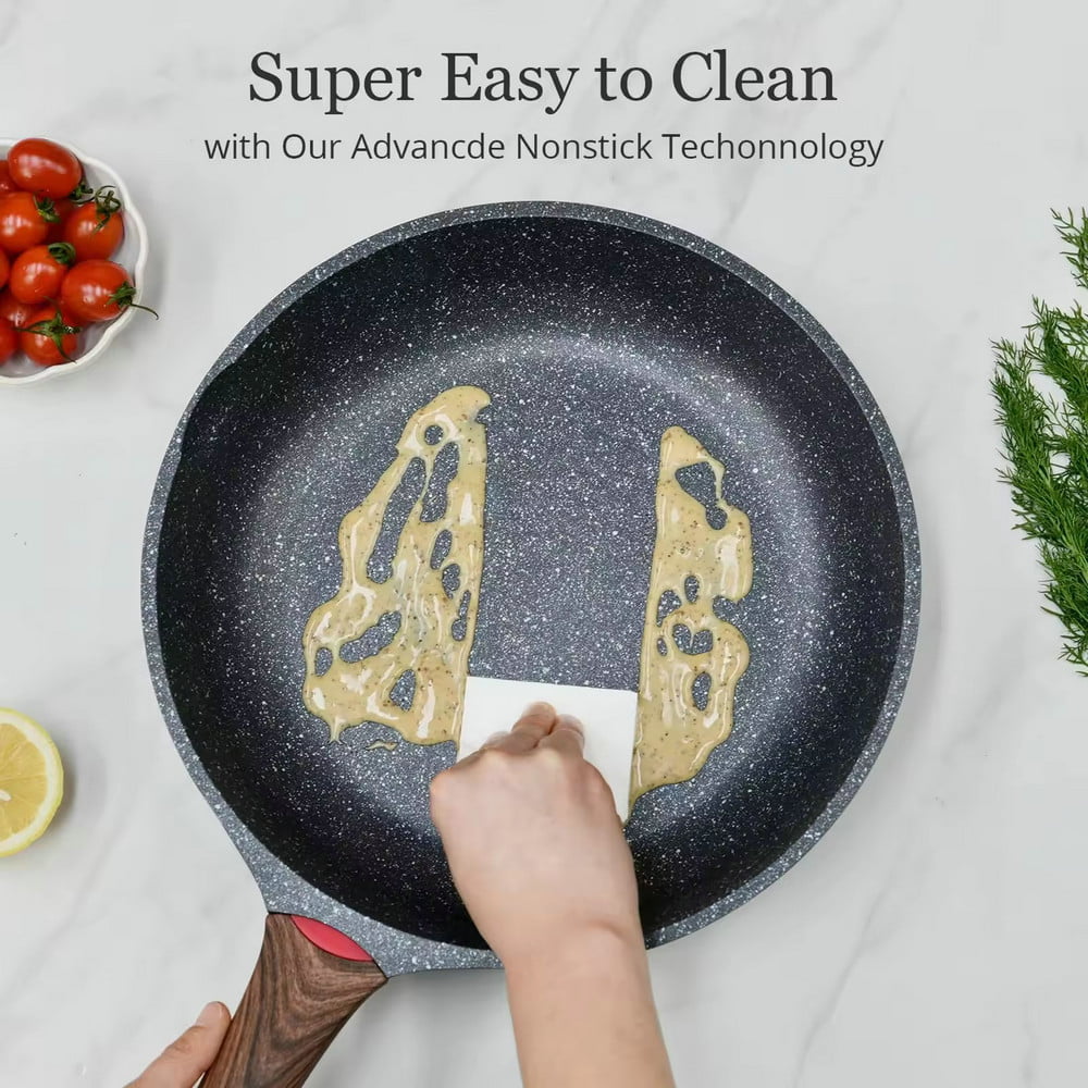 Padella antiaderente grande con logo personalizzato a grandezza naturale con manico in legno