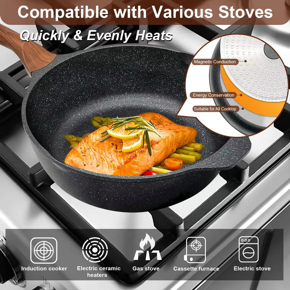 Padella antiaderente grande con logo personalizzato a grandezza naturale con manico in legno Wholesale