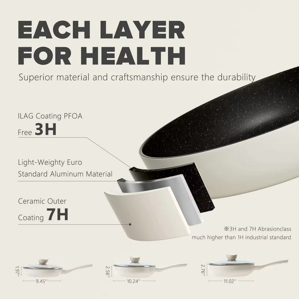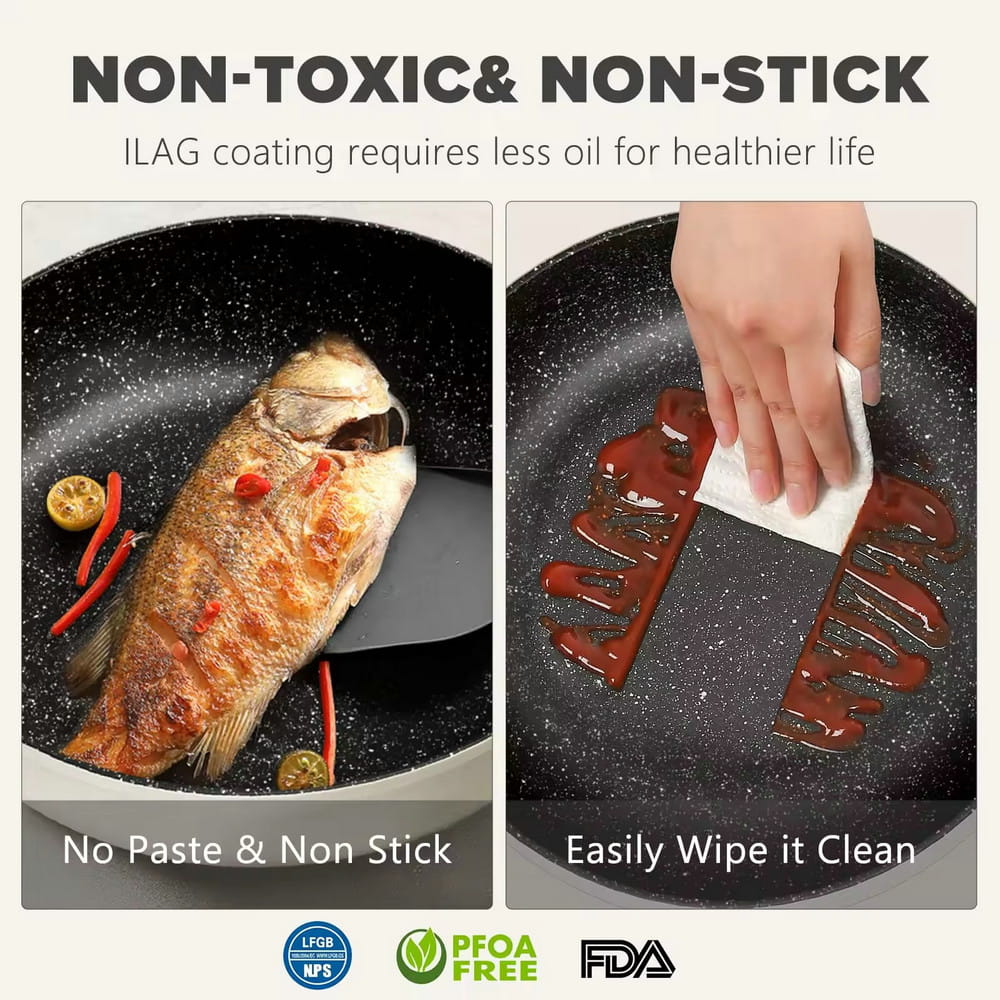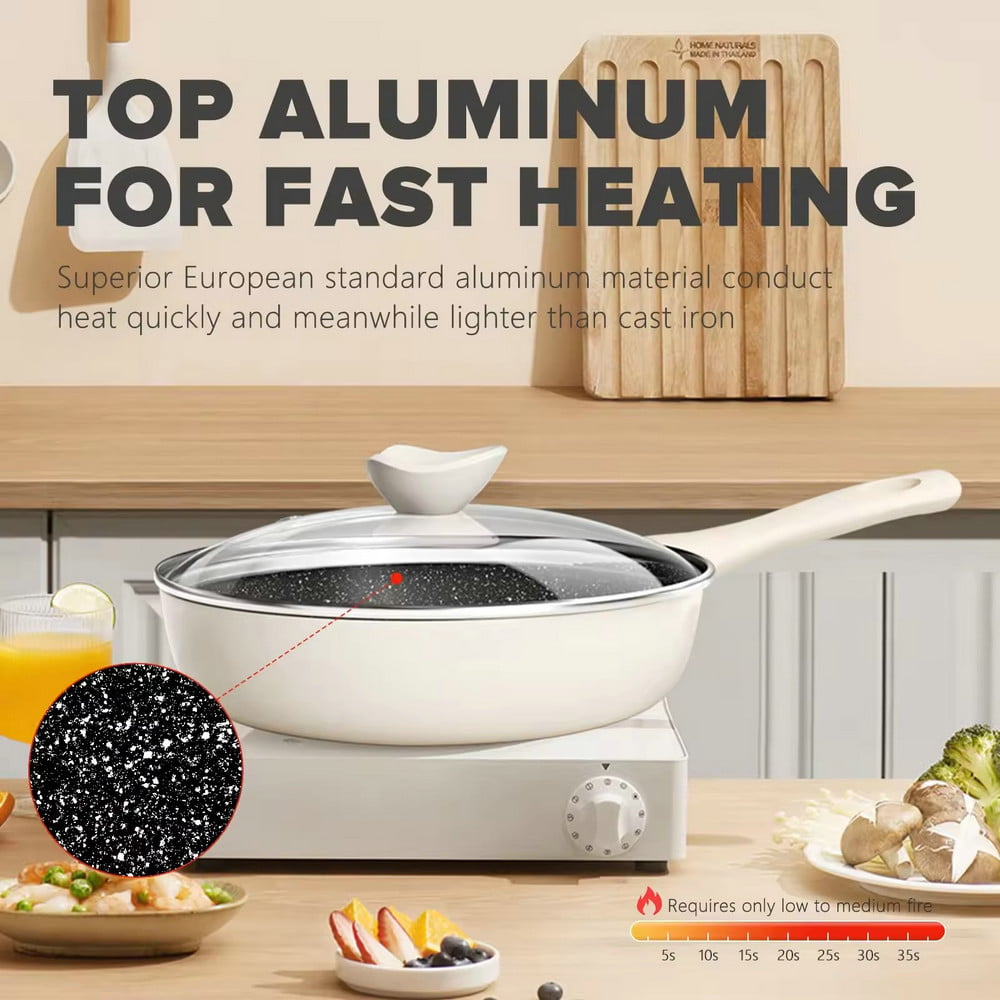Padella antiaderente leggera in pietra di granito per cucinare con coperchio in vetro