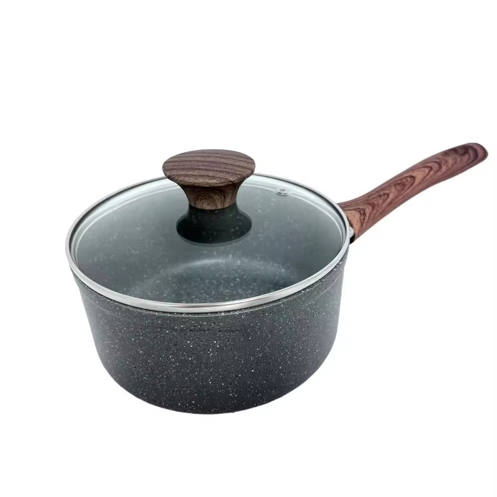 Casa / Prodotto / Pentola per salsa/pentola per latte / Casseruola in alluminio pressato rivestita in marmo con manico in legno