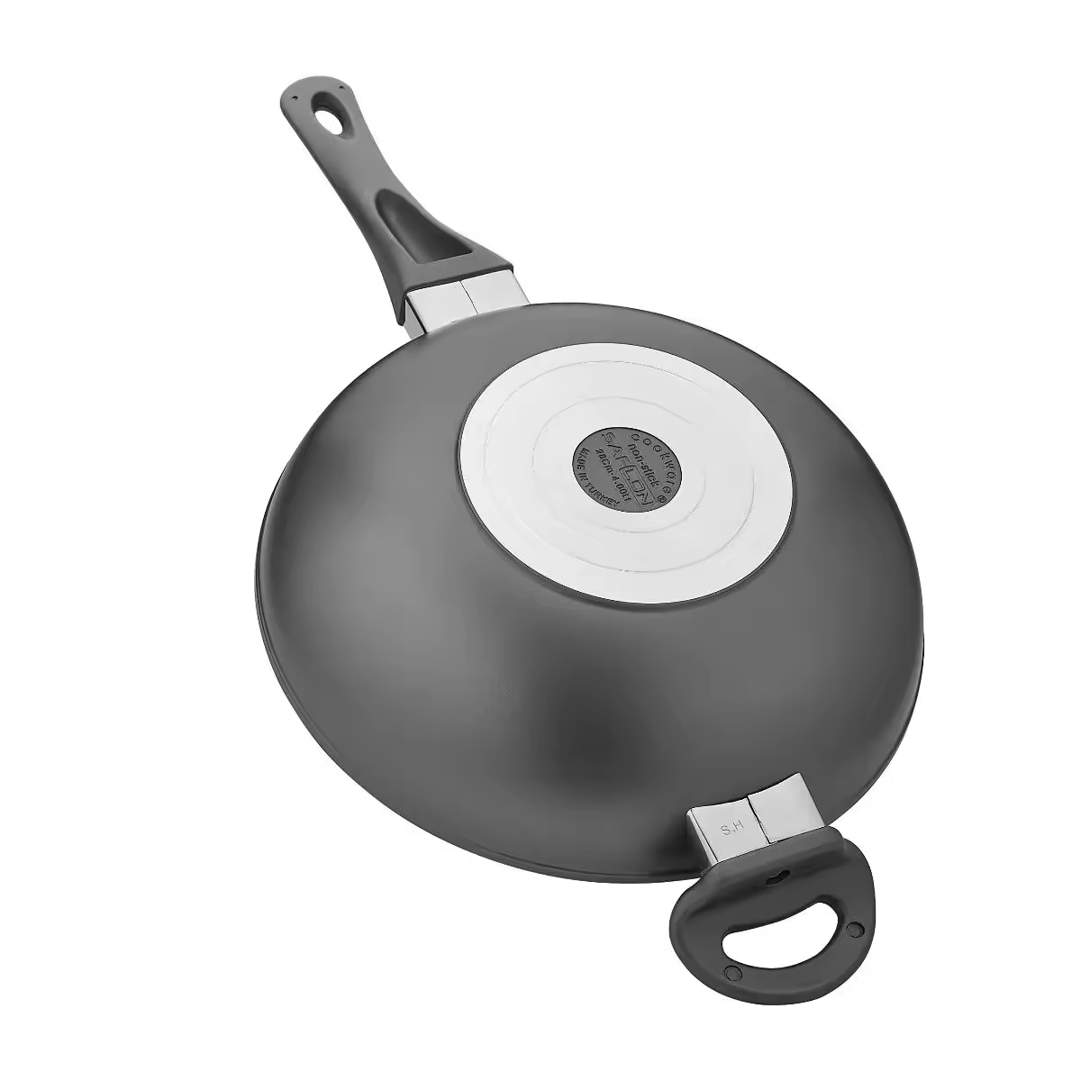 Casa / Prodotto / Wok / Padella wok antiaderente in alluminio da cucina multiuso resistente ai graffi con logo personalizzato con coperchio